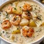 A comforting and creamy Nova Scotia Seafood Chowder featuring a medley of fresh seafood simmered with potatoes, vegetables, and aromatic herbs in a rich, creamy broth.