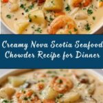 A comforting and creamy Nova Scotia Seafood Chowder featuring a medley of fresh seafood simmered with potatoes, vegetables, and aromatic herbs in a rich, creamy broth.