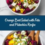 A vibrant and refreshing Orange Beet Salad featuring tender cooked beets, zesty orange, crunchy pistachios, tangy feta cheese, and a hint of red onion. This healthy salad combines sweet, savory, and citrus flavors, making it a perfect side dish or light meal option.