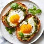 This Pesto Eggs on Sourdough with Herbed Goat Cheese Recipe pairs beautifully with a simple mixed green salad tossed in a light vinaigrette or fresh fruit on the side for a refreshing balance. For something heartier, roasted cherry tomatoes or crispy bacon make excellent companions.