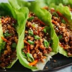 If you have leftovers, store the cooked chicken mixture in an airtight container in the refrigerator for up to 3 days. Keep the lettuce leaves separate to prevent them from wilting or becoming soggy.