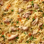 To reheat, place leftovers in a pan over low to medium heat with a splash of chicken broth or water to help loosen the noodles and revive that fresh-off-the-stove taste. Stir frequently until heated through to avoid drying out the dish.
