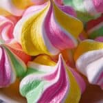 Delight in these colorful and airy Rainbow Sherbet Meringues, a vibrant twist on classic meringue cookies. These light, crisp swirls are perfect for parties and pair beautifully with a scoop of rainbow sherbet for an extra touch of fun and flavor. Made with simple ingredients and gel food coloring, these gluten-free and vegetarian treats bring a festive splash of color to any dessert table.
