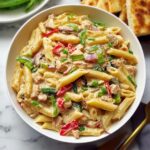 Begin by cooking the penne pasta just shy of al dente — about 2 minutes less than the package suggests. This ensures the pasta will hold its shape and texture when combined with the sauce later. Once cooked, drain and set the pasta aside while you focus on the flavorful elements.