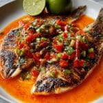 This Red Snapper with Creamy Creole Sauce recipe features tender, pan-seared red snapper fillets topped with a rich, flavorful sauce made from heavy cream, Creole seasonings, and sautéed vegetables. Perfectly seasoned and cooked to golden perfection, this dish offers a delightful blend of Southern-inspired flavors served in just 35 minutes.