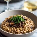 For a special occasion, serve the risotto in elegant shallow bowls topped with a few whole sautéed porcini mushrooms for visual appeal. Alternatively, use small ramekins and broil with a dusting of grated cheese to create a lightly crisp top. No matter the presentation, the luxurious creaminess makes it a crowd-pleaser.
