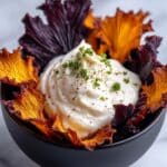 Serve the beet chips in rustic wooden bowls or colorful ceramic dishes to highlight their vibrant purples and reds. Arrange the dip in a small terracotta pot to enhance its creamy white contrast. For parties, consider stacking the beet chips in a conical paper holder for a fun “chip cone” presentation that’s easy to grab and munch.