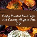 Crispy roasted beet chips paired with a creamy, tangy whipped feta dip make a delicious and healthy appetizer or snack. Thinly sliced beets are seasoned and baked to perfection, providing a satisfying crunch, while the whipped feta dip adds a smooth and flavorful complement.