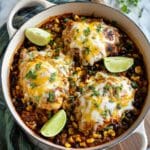 - Garnish and Serve: Remove the baking dish from the oven. Garnish with fresh cilantro leaves. Serve hot with optional toppings such as sour cream, avocado slices, lime wedges, and alongside warm tortillas or cooked rice for a complete meal.