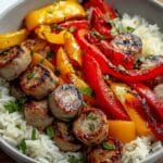 There’s something truly comforting about a warm plate of sausage, onion, bell peppers & tomatoes over rice that feels like a hug on a fork. It’s simple, colorful, and perfectly balanced — a recipe that’s become a fast favorite in my kitchen and one I’m excited for you to try. It’s bound to bring smiles around your table and create happy mealtime memories to savor. Give it a go, and enjoy every delicious bite!