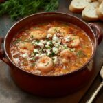Shrimp Saganaki Soup is a vibrant and comforting Greek-inspired dish featuring tender shrimp simmered in a rich tomato and vegetable broth, infused with aromatic herbs and spices, and finished with tangy feta cheese. This hearty soup combines the classic flavors of saganaki in an easy-to-make, satisfying bowl perfect for seafood lovers.