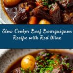 This Slow-Cooked Beef Bourguignon is a classic French stew featuring tender beef chuck slow-cooked in a rich red wine and beef broth sauce with bacon, onions, mushrooms, and fresh herbs. Perfectly hearty and comforting, this recipe delivers deep flavors developed over hours of slow cooking, ideal for cozy dinners or special occasions.