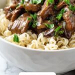 Freshly chopped parsley sprinkled on top brings a bright burst of color and a hint of herbaceous freshness that balances the richness of the stroganoff. It’s a small touch that elevates the dish from comforting to truly special.