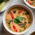 Slow Cooker Tom Kha Soup Recipe teams wonderfully with a fragrant bowl of steamed jasmine rice or sticky rice, soaking up all the luscious broth. For something lighter, crisp vegetable spring rolls or a fresh papaya salad complement the soup’s creamy texture and bold flavors perfectly.