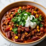 Garnishing is your chance to add freshness and contrast to the hearty chili. A dollop of crisp sour cream or creamy avocado helps tame the spice, while a sprinkling of shredded cheddar or Monterey Jack highlights the richness. Fresh chopped cilantro or green onions add a lively, herbaceous touch that brightens up the bowl.