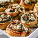 Spinach Feta Puff Pastry Pinwheels Recipe pairs beautifully with a crisp green salad dressed in a tangy vinaigrette or a simple bowl of soup like tomato basil or roasted red pepper. These sides help balance the richness of the pinwheels and create a satisfying meal or appetizer spread.