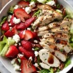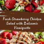 A refreshing and vibrant Strawberry Chicken Salad combining grilled chicken breasts with fresh mixed greens, juicy strawberries, tangy feta cheese, crunchy walnuts, and a drizzle of balsamic vinaigrette for a perfect light meal or appetizer.