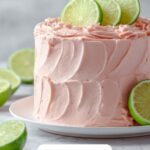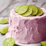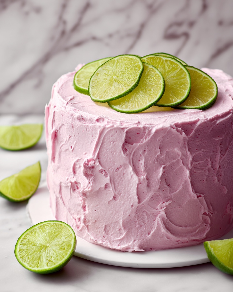 Place one cooled cake layer on your serving plate. Spread a generous layer of frosting on top, then place the second cake layer over it. Cover the top and sides of the cake with the remaining frosting. For a final special touch, garnish with sliced strawberries, lime wedges, or extra lime zest. Chill the cake briefly to make slicing cleaner and easier.