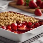 This Strawberry Rhubarb Crisp combines tart rhubarb and sweet strawberries topped with a buttery oat crumble. Baked to golden perfection, it makes a comforting dessert that’s perfect for spring and summer gatherings.