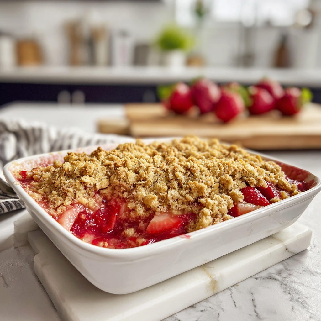 Take your Strawberry Rhubarb Crisp Recipe to the next level by serving it in individual ramekins for a charming personal touch. Add crunchy granola on top for extra texture or drizzle with a little honey or lemon glaze to highlight the fresh fruit’s brightness. Setting a small spoonful inside hollowed-out strawberries or rhubarb stalks can turn this classic crisp into an eye-catching treat at your next gathering.