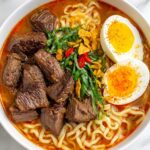 This Tomato Egg and Beef Noodle Soup is a flavorful and comforting Asian-inspired dish featuring tender marinated beef, silky egg ribbons, and fresh tomatoes in a savory beef broth with noodles. Perfect for a quick, satisfying meal, it combines simple ingredients with a rich, warming broth that’s ideal for any season.
