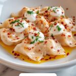 Turkish Dumplings with Garlicky Yogurt and Spiced Oil are delicate, handmade dumplings filled with seasoned ground lamb or beef, boiled to perfection, and served with a creamy garlic-infused yogurt sauce drizzled with a fragrant, spiced butter or olive oil. This traditional dish combines tender dough, savory meat, and vibrant spices for a comforting and flavorful meal perfect for sharing.